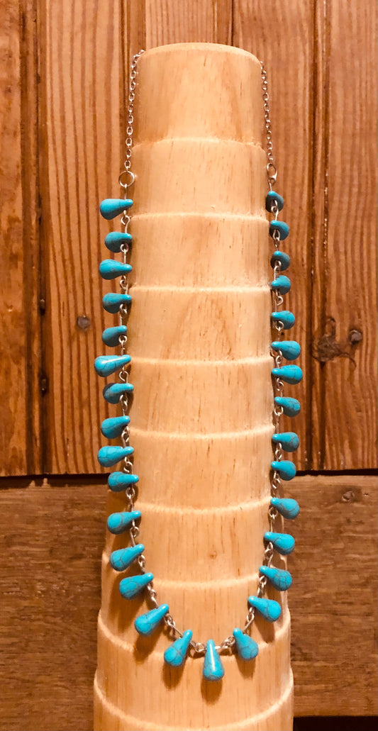 Chrysocolla Blue-green Gemstone and Sterling Silver Necklace