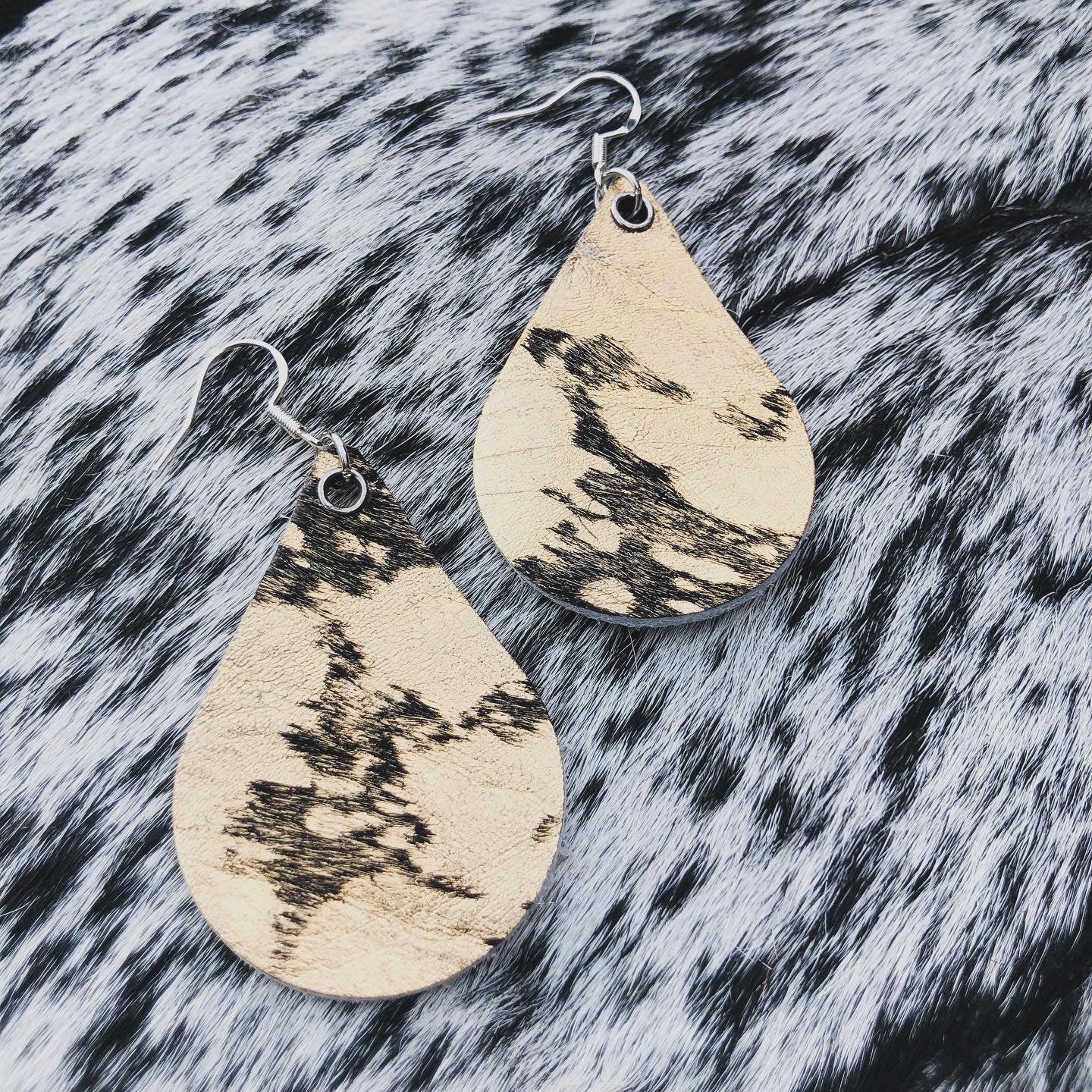 "Add some western flair to your jewelry collection with these Gold Metallic Acid Washed Teardrop Earrings. The acid washed finish gives them a unique edge, while the teardrop shape adds a touch of elegance. Stand out in style with these quirky and playful earrings!"