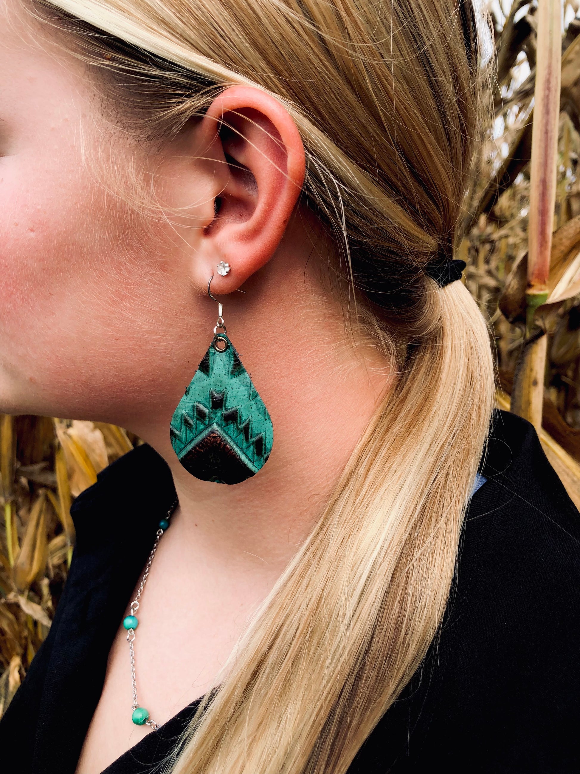 Turquoise and Copper Leather Teardrop Earrings
